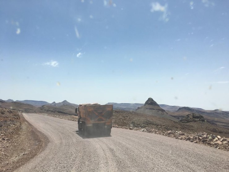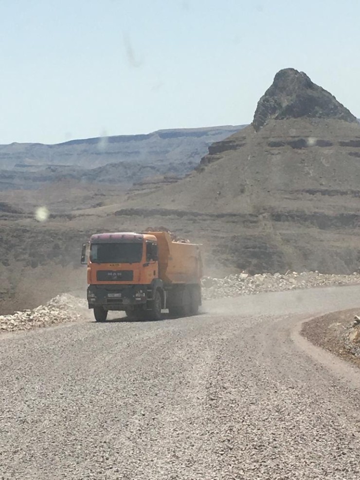 avec goudron bien défoncé et camions partout qui doublent n’importe comment ! Ouaou…la conduite marocaine…!