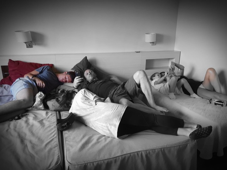 Éreintés par 7 heures de route et 2 heures d’attente à la douane.