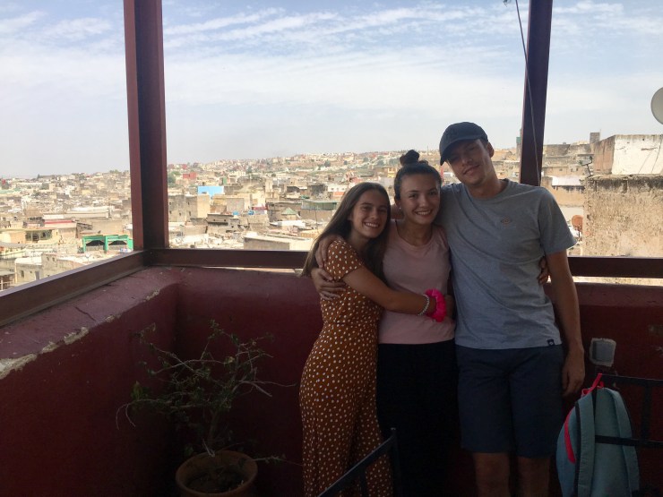 Après 6 heures de route éprouvantes, nous arrivons enfin à l’aéroport de Fes où nous retrouvons notre 2 eme guest star, Fred la grande cousine !