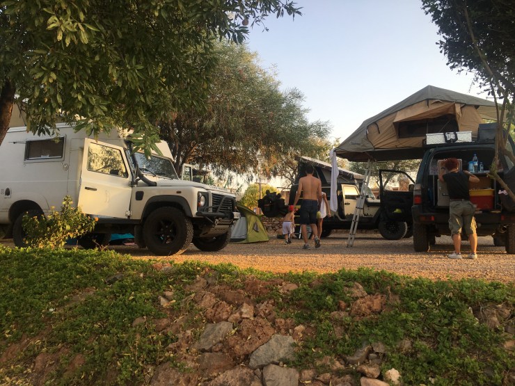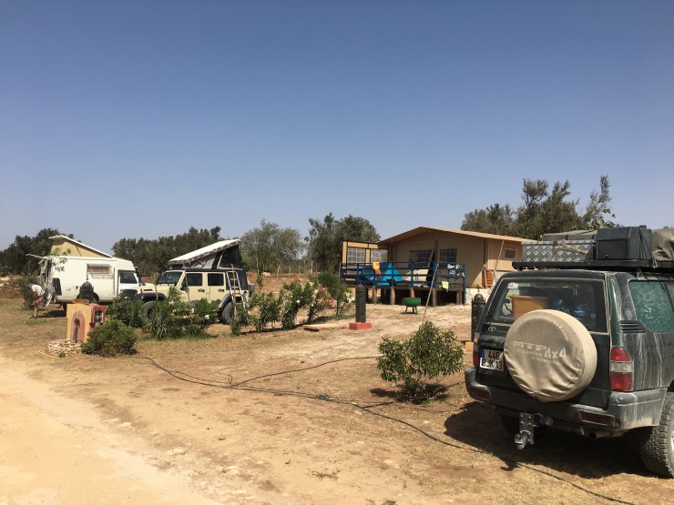 Par chance, nous tombons sur un camping, normalement fermé, tenu par des européens. Un de ces campings qui servent à nos retraités pour passer 6 mois d’hiver au soleil à moindre frais.