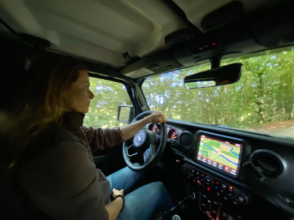 Lara aux commandes…alors, elle est comment ta nouvelle jeep ? 😜