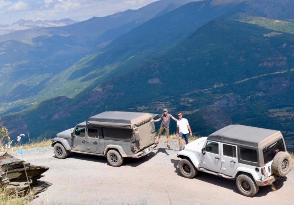2 véhicules au départ: philippe et nathalie, nos amis fraîchement jeeper