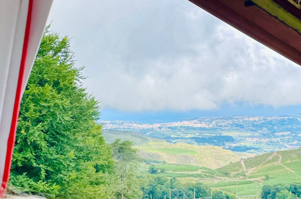 On prend le train de la rhune, il parait que c’est très beau là haut! Durant le trajet, on aperçoit des énormes vautours, des chevaux…et arrivés là haut, superbe vue mais un peu dans le brouillard!