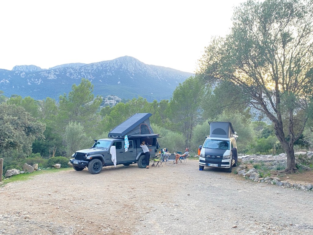 Ce soir nous dormirons en montagne. Bivouac parfait avec vue, à pixarells.Ça fait du bien de retrouver des vrais montagnes !