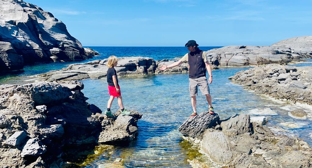 Et on retrouve le merveilleux bivouac on l’on avait passé la nuit il y a 6 ans, avec piscines naturelles et vue incroyable. Mais il y a bcp de vent, on ne pourra pas dormir la…🙁Une petite séance photo face à la mer avant de partir