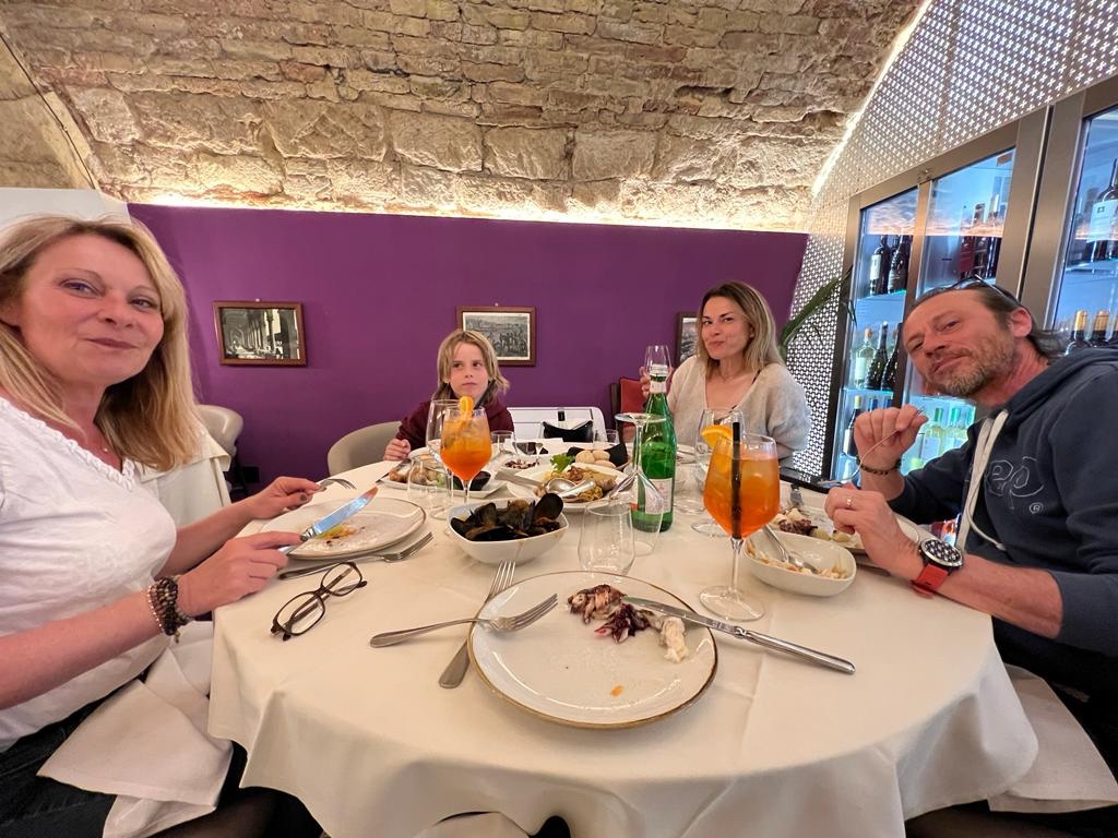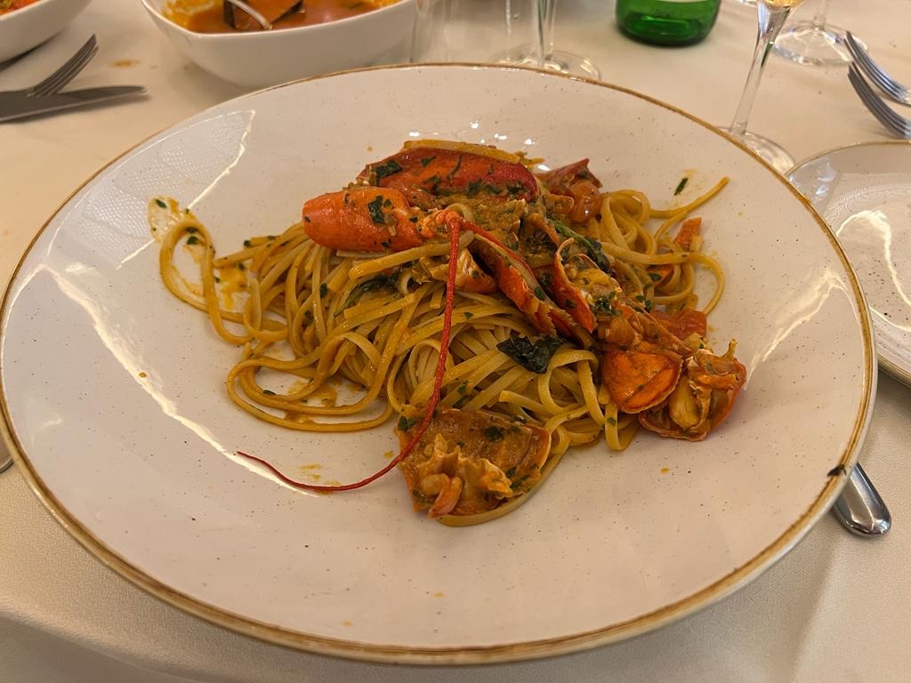 la douche chaude!!!! peignoir, crème pour le corps etc… on est tout beau, on prend le taxi pour THE resto antica. On veut les pâtes au homard!!!! une tuerie…. 😱