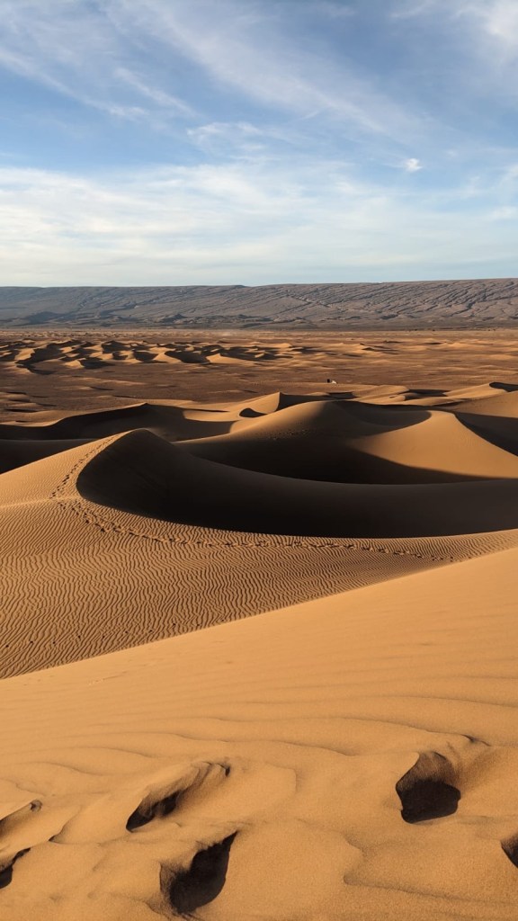 Le sable sous les roues!!!! On lâattendait, il est lĂ !!! Câest pas encore le Sahara mais ça fait du bien!!!