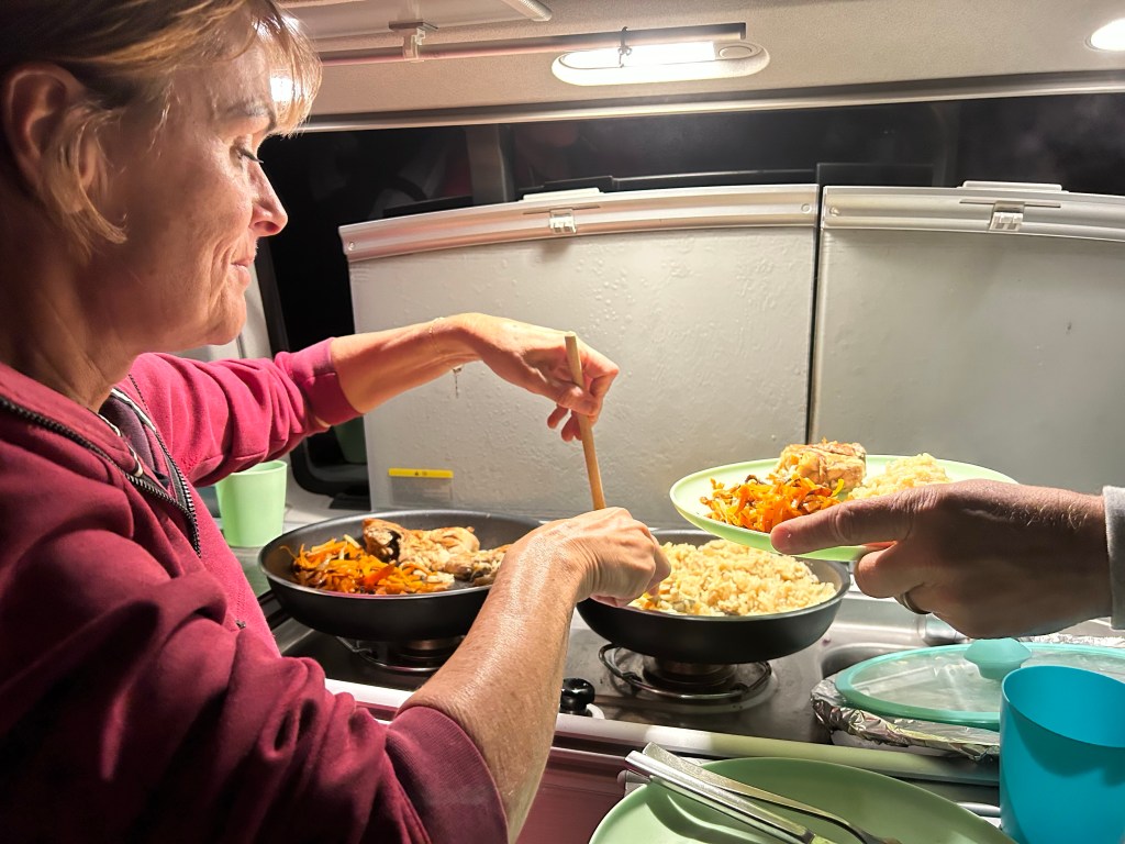 Il nous a prĂ©parĂ© du poulet marinĂ© pour les grillades quâon a bien lâintention de se faire dans le dĂ©sert!! (Je pense quâil nous a un peu arnaquĂ© aussi⊠mais quâest ce quâon a rigolĂ©! đđđ)