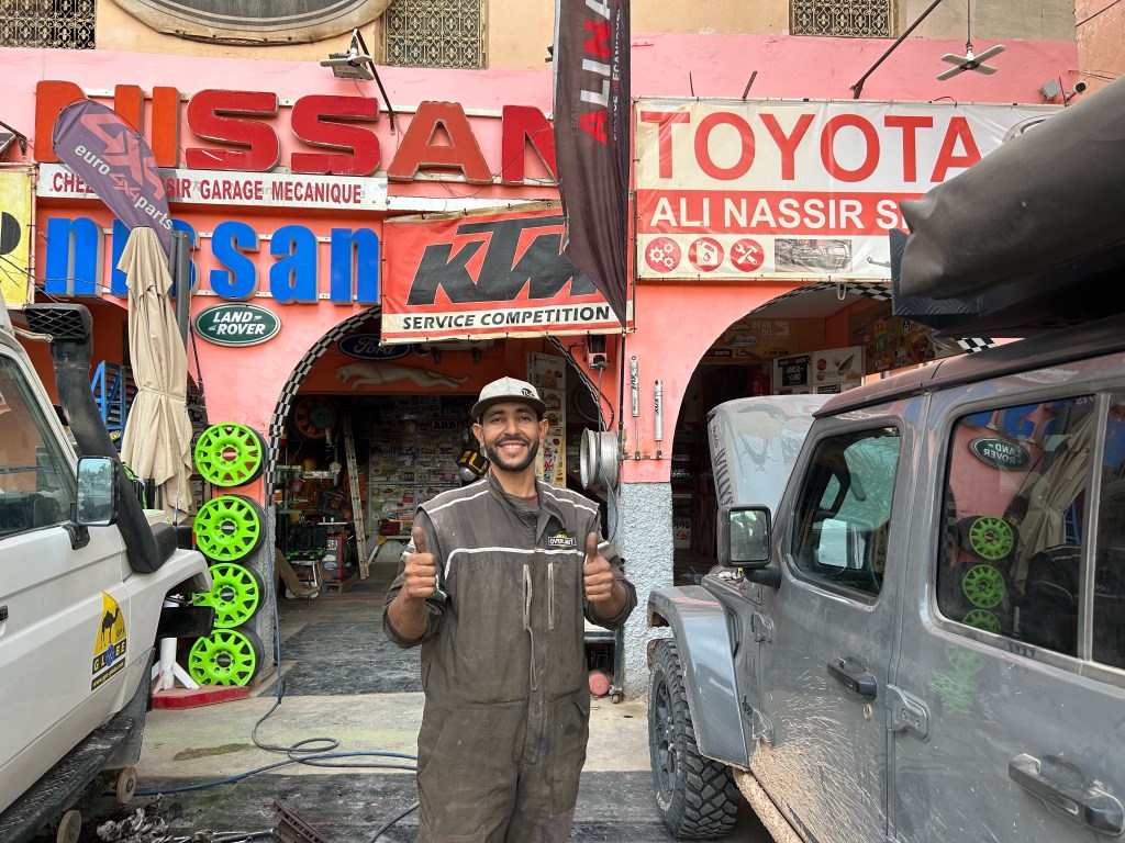 Zagora nous voilà ! On fait une halte chez Saïd le meilleur mécano de zagora pour le nettoyage des filtres.