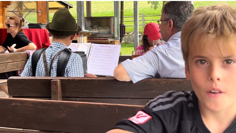 Midi en bas d’une station pour goûter la POLENTA et le STRUDEL autrichien!! On a même les serveuses en tenue tradi et le petit joueur d’accordéon 😃C’est ce que je voulais chui contente !!!!!!!😃😃😃