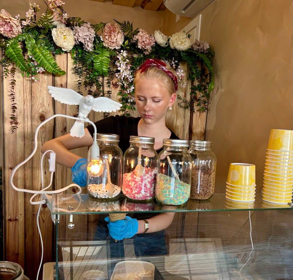 Elle sâappelle Paivie (je sais pas comment ça sâĂ©crit) et nous amĂšne goutter les framboises de la ferme voisine (la ferme vierula) et une petite glace au daim⊠au passage đ