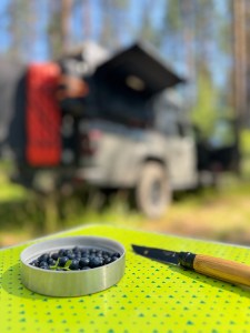 Pause dĂ©jeuner en forĂȘt, avec cueillette de myrtilles