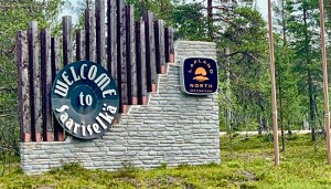 Et Ă nous les pistes finlandaises! On monte, on monte, on monte et paf! On passe le cercle polaire! Plus prĂ©cisĂ©ment le cercle ARCTIQUE, lĂ oĂč le soleil ne se couche pas en Ă©tĂ© et ne se lĂšve pas en hiver!